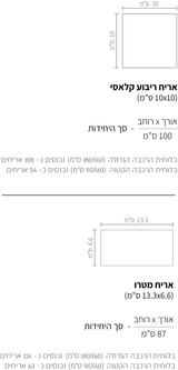 מדדו את האורך והרוחב של האזור בו אתם רוצים להתקין את האריחים וחשבו כמה אריחים אתם צריכים. תכפילו את האורך והרוחב ואת התוצאה תחלקו ב-100 (לריבוע קלאסי) או ב-87 (למטרו). התוצאה היא מספר האריחים שאתם צריכים.ממליצים לקחת 10% יותר. הצלחתם? אל תדאגו, אנחנו עשינו בשבילכם את החישובים הקשים ;)